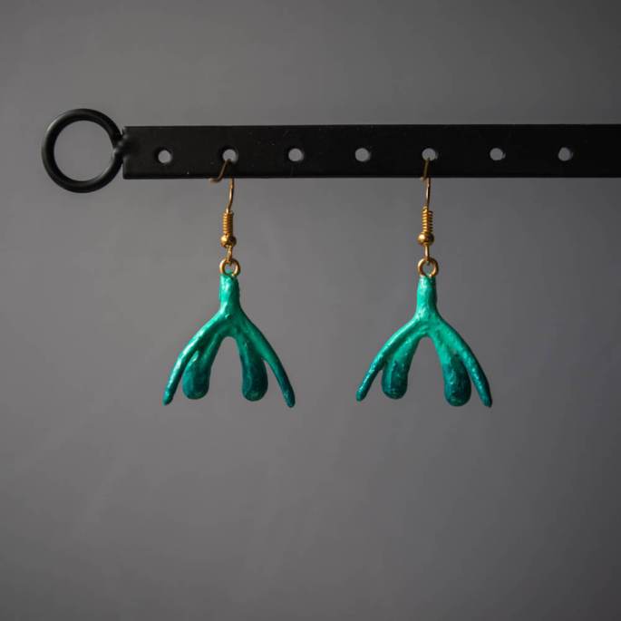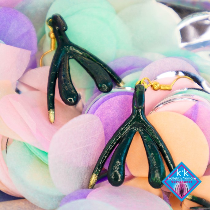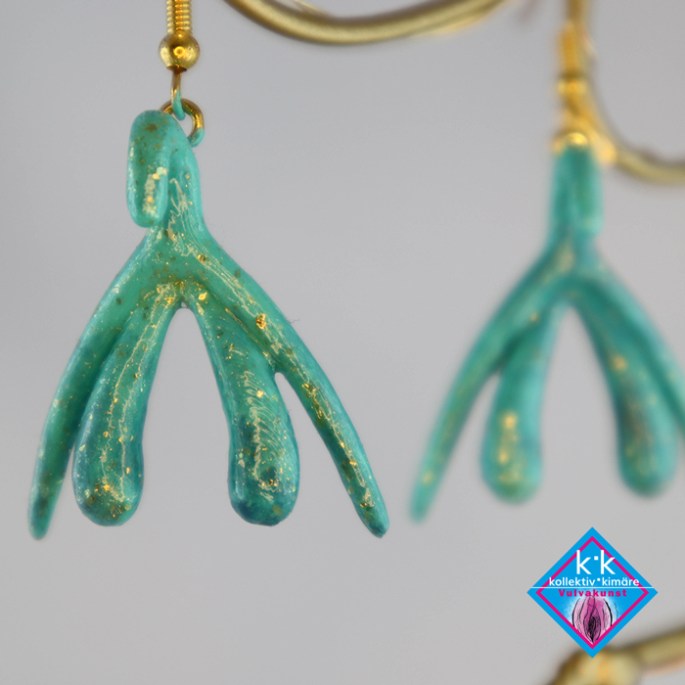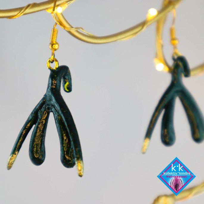 Klitorisohrringe Handbemalt – Dunkelgrün-Gold