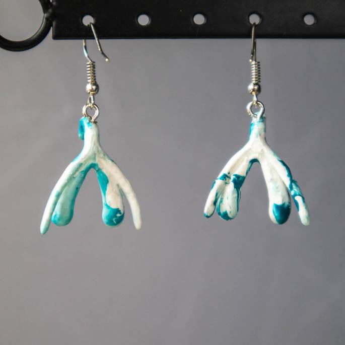 Klitorisohrringe Handbemalt – Weiß-Türkis Marmoriert