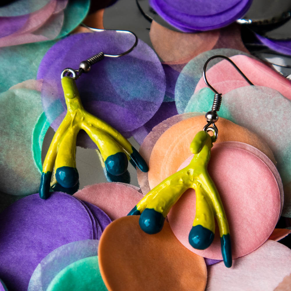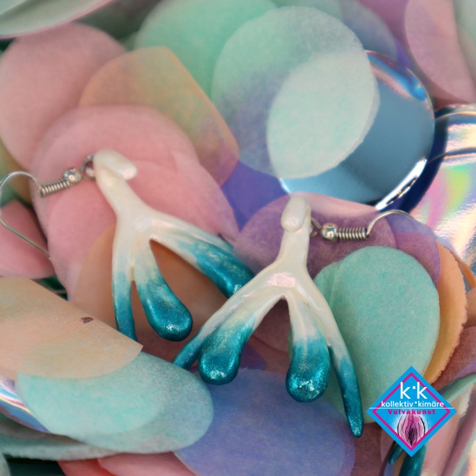 Klitorisohrringe Handbemalt – Yellow Green – Deep Teal