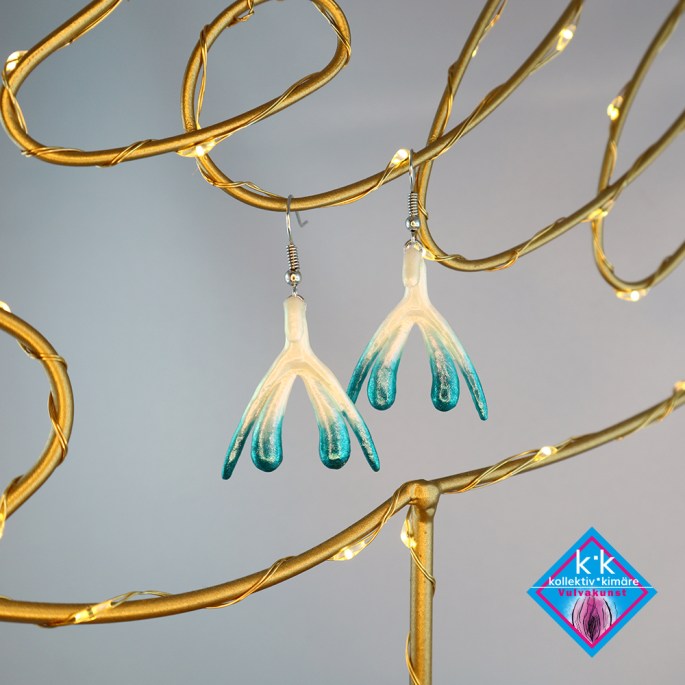 Klitorisohrringe Handbemalt – Türkis Verlauf Gold